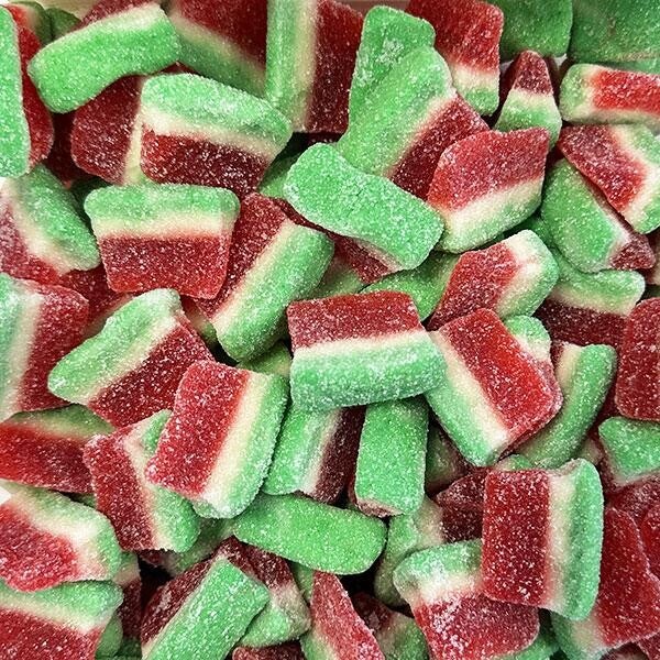 Ingrédients: Sirop de glucose, sucre, eau, gélatine de bœuf halal, amidon modifié de pomme de terre, acidifiants (E270, E296, E330), arôme artificiel, agents d'enrobage (monostéarate de glycérol (tournesol, E471)), huile végétale (coco, karité), colorants (E100, E129, E133, E160a, E163). Le colorant E129 peut avoir des effets négatifs sur l'activité et l'attention chez les enfants.